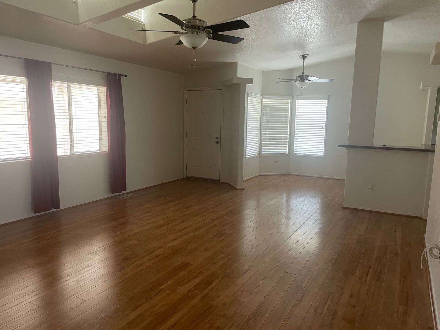 Features 3 Bedroom, 2 Baths, Laminate Wood Flooring, Cathedral Ceilings, Wood Blinds, and Stone Counter tops/Upgraded Appliances. Centrally Located. Includes all appliances (refrigerator, washer/dryer, range, microwave), extra storage, and extra covered parking.
