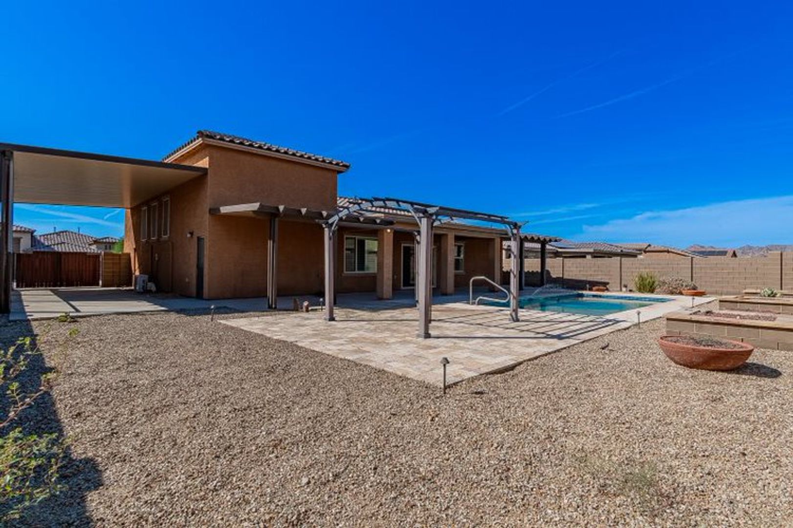 Take a look at this Gorgeous 3 Bedroom, 2 Bath Home in Las Barrancas! Home offers a 2 Car Garage and RV Garage as well as an RV Carport. Garages have epoxy painted floors, AC & Attic Storage. Home has Tile throughout, Plantation Shutters, Solar & Tankless H2O Heater. Kitchen includes Granite, Stainless Appliances. Master Bedroom has His/Her Vanities, Large Snail Shower with multiple shower heads & a Large Walk-In Closet. Beautiful Backyard includes a Heated Pool (14x40x5ft deep) & Large Covered Patio. To schedule a showing contact Nicole DeForest @928-210-4430. ASK ABOUT THE MILITARY DISCOUNT!