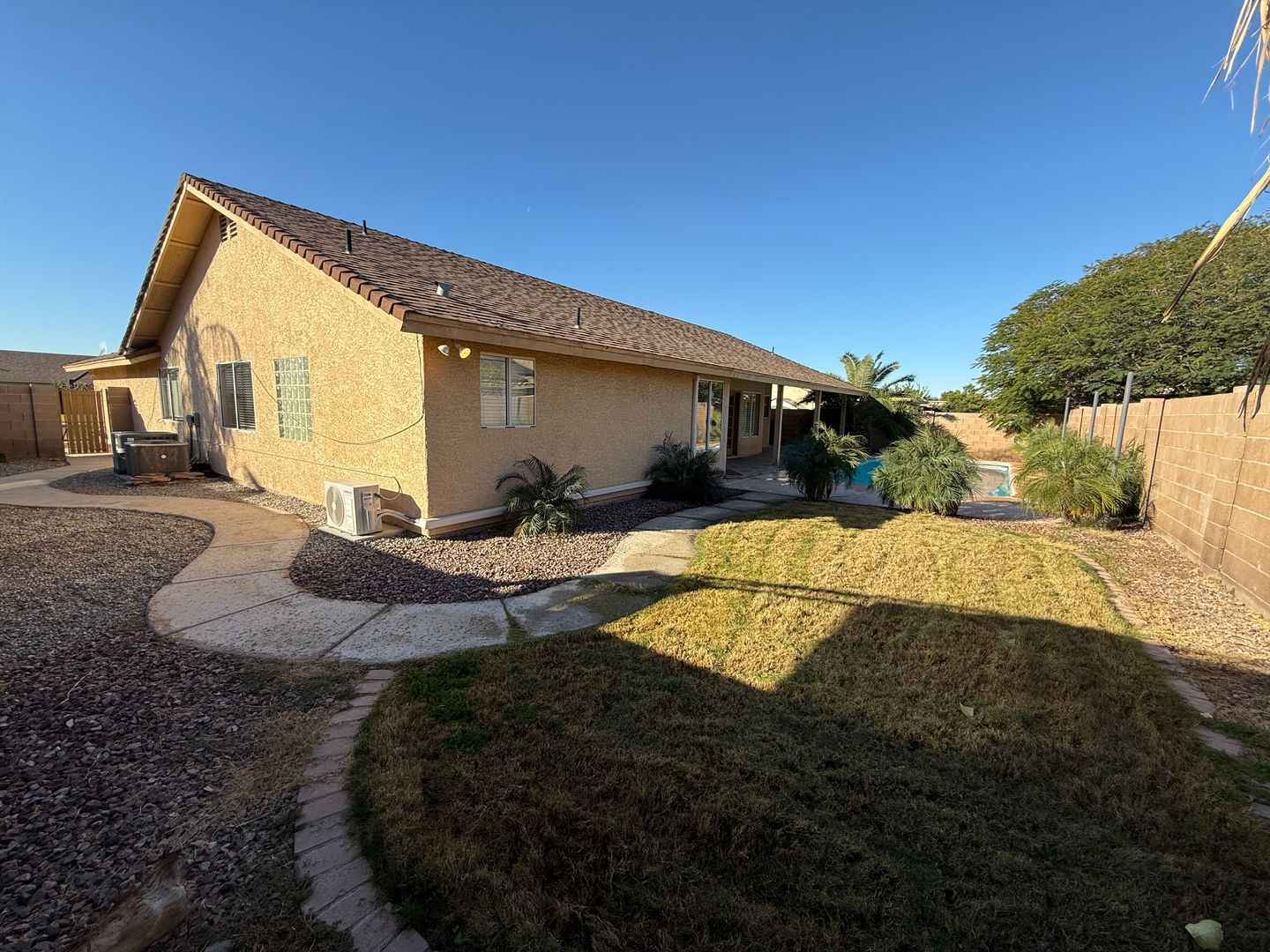 Four bedrooms, two bathrooms, over 2000 square feet with a 2 1/2 car garage, mature landscaping in front and back as well as a beautiful pool to cool you down in those hot summer months! Open living space with a large kitchen, vaulted ceilings and two living areas. The home has two central A/C units and two additional mini-split A/C units installed in the Kitchen and Master Bedroom, to keep the home as cold as you’d like! All units work perfectly. Master bedroom is complete with direct access to the backyard, a seating area, two vanity’s in the bathroom, a soaking tub, separate shower, private toilet and walk-in closet. This home has it all! Call Hailey at 928-246-1695 for more information or to schedule a showing today!